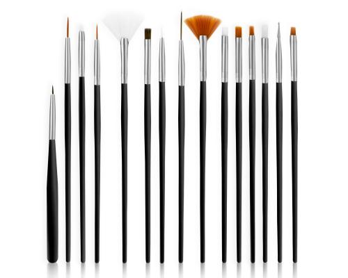 Zestaw 15 różnych pędzelków do żelu, lakieru i zdobień.